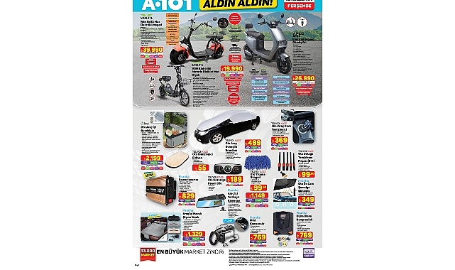 Türkiye’nin 81 ilinde ve her ilçesinde, 1.200’ün üzerinde tedarikçisi ile perakende sektörünün öncü şirketleri arasında yer alan A101, 12 Haziran’da avantajlı teknolojik ürünleri satışa sunacak.Elektrikli Araçlar ve Araç Aksesuarlarında Geniş SeçeneklerVOLTA Yıde Se03 Max Elektrikli Moped 39.990 TL, APEC APS2 Elektrikli Moped Gümüş Gri 26.990 TL, VOLTA VSM Elektrikli Motorlu Bisiklet Mat Siyah 19.990 TL ve OLA EFB5 Katlanabilir Elektrikli Bisiklet 25.990 TL fiyatlarıyla satışa sunuluyor. Araç içi konfor ve donanım arayan tüketiciler için KIWI Oto Araç İçi Buzdolabı 2.199 TL, PIRANHA Araç İçi Yol Kayıt Kamerası 1.149 TL, PIRANHA Power Inverter 829 TL, PIRANHA Mini Kompresör 769 TL ve PIRANHA Dijital Hava Kompresörü 769 TL’den mağazalarda yerini alıyor.Televizyon ve Elektronik Ürünler Tüketiciyle BuluşuyorSAMSUNG 70DU7100 70" 4K UHD Smart LED TV 36.999 TL, TOSHIBA 65UA2363DT 65” 4K UHD Android TV 25.999 TL, TOSHIBA 55UV2363DT 55” 4K UHD Vidaa TV 16.999 TL ve FOBEM 43'' FHD Android LED TV 8.499 TL’den tüketicilerle buluşurken; HOMETECH Alfa 620C Notebook 6.499 TL, MIPO S22 Akıllı Saat 1.099 TL, PIRANHA 2210 Bluetooth Kulaklık 379 TL, PIRANHA Kablosuz Oyuncu Kulaklığı 549 TL ve PIRANHA 2205 Bluetooth Çocuk Kulaklığı 349 TL fiyatlarıyla satışa sunuluyor.Fonksiyonel Beyaz Eşya Ürünleri SatıştaSEG CX 4821 Inox No-Frost Buzdolabı 21.999 TL, SEG CM 911S INV Silver Çamaşır Makinesi 12.999 TL, SEG BM 6001X Inox Bulaşık Makinesi 11.499 TL ve KIWI KWP-8555 Gizli Damacana ve 3 Musluklu Su Sebili 7.299 TL fiyatlarıyla bu hafta tüketicilere sunuluyor.Ev Aletleri ve Kişisel Bakımda Uygun Fiyatlı ModellerKIWI KCC4320 Koltuk ve Halı Yıkama Makinesi 3.999 TL, SINBO SVC 8614 Dikey Elektrikli Süpürge 899 TL, KIWI KFAN-7419 Sirkülasyonlu Vantilatör 1.299 TL, APRILLA AVC-4034 Şarjlı El Süpürgesi 499 TL, ENGLISH HOME Stand Mikser 4.599 TL, ARZUM AR1111 Starry El Blender Seti 1.799 TL, HOMEND Royaltea 1755H Plastik Çay Makinesi 1.399 TL fiyatlarıyla dikkatleri çekiyor. Kişisel bakım ürünleri arasında ise APRILLA Şarjlı Saç-Sakal Kesme Makinesi 349 TL, PIERRE CARDIN Saç Sakal Kesme Makinesi 799 TL, PIERRE CARDIN Erkek Bakım Seti 899 TL ve APRILLA ABS-1033 Dijital Banyo Baskülü 299 TL fiyatlarıyla tüketicilerle buluşuyor.VOLTA Yıde Se03 Max Elektrikli Moped, VOLTA VSM Elektrikli Motorlu Bisiklet Mat Siyah, TOSHIBA 55UV2363DT 55” 4K UHD Vidaa TV, SEG CX 4821 Inox No-Frost Buzdolabı, SEG CM 911S INV Silver Çamaşır Makinesi ve SEG BM 6001X Inox Bulaşık Makinesi a101.com.tr’de ayrıca satışa sunulacaktır. Kaynak: (BYZHA) Beyaz Haber Ajansı