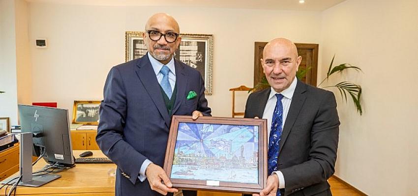 İzmir Büyükşehir Belediye Başkanı Tunç Soyer, Venezuela Ankara Büyükelçisi Jose Gregorio Bracho Reyes’i ağırladı. Büyükelçi Reyes, İzmir'deki gelişimi yakından izlediklerini ve örnek alacakları çok alan olduğunu söyledi.