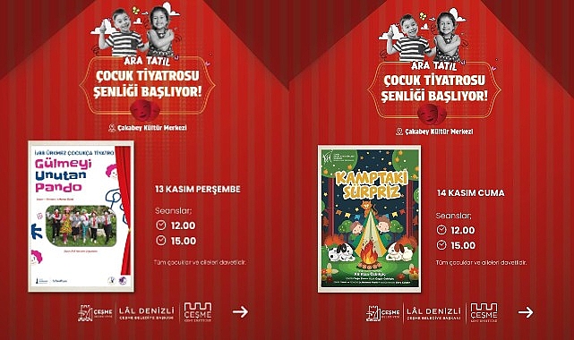 Çeşme Belediyesi, çocuklara eğlenceli ve öğretici bir ara tatil yaşatmak için dopdolu bir tiyatro şenliği düzenliyor.12–16 Kasım tarihleri arasında Çakabey Kültür Merkezi’nde gerçekleşecek “Ara Tatil Çocuk Tiyatrosu Şenliği”, birbirinden renkli oyunlarla minik izleyicileri sahne büyüsüyle buluşturacak.Çeşme Kent Enstitüsü ile düzenlenen şenlikte her gün iki seans (12.00 ve 15.00) hâlinde ücretsiz tiyatro gösterimleri yapılacak. Etkinlikler, çocukların hem keyifli vakit geçirmesini hem de sanata olan ilgilerini geliştirmesini hedefliyor.Çeşme Belediye Başkanı Lâl Denizli, şenlik vesilesiyle yaptığı açıklamada, çocukların sanatla erken yaşta buluşmasının önemine dikkat çekti:“Çocuklarımızın yalnızca eğlendiği değil, düşündüğü, paylaştığı ve üretkenliğini ortaya koyduğu etkinlikler düzenlemek bizim için çok değerli. Ara tatil döneminde tiyatroyla buluşan her çocuk, hayal gücünün sınırlarını genişletiyor. Biz Çeşme’de sanatla büyüyen, özgüvenli ve mutlu nesiller için çalışıyoruz.”Festival Programı12 Kasım ÇarşambaOyun: Yağmuru Sevmeyen Çocuk