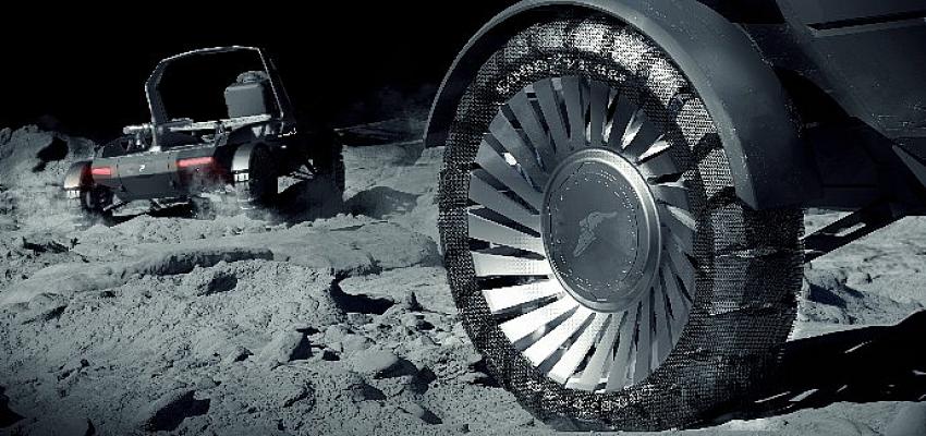Goodyear, kraterlerle dolu Ay yüzeyine uygun, Dünyanın altıda biri kadar yerçekimi olan ve çetin hava koşullarında kullanıma uygun araç lastikleri geliştiriyor.
