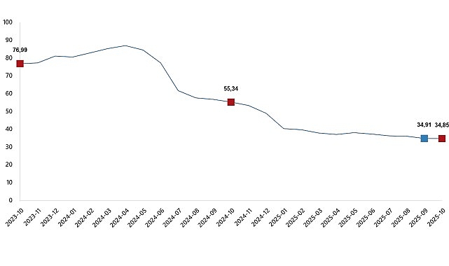 H-ÜFE yıllık değişim oranı(%), Ekim 2025Hizmet Üretici Fiyat Endeksi (H-ÜFE) yıllık %34,85 arttı, aylık %0,19 arttı