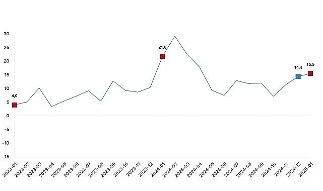 İnşaatın alt sektörleri (2021=100 referans yıllı) incelendiğinde, 2025 yılı Ocak ayında bina inşaatı sektörü endeksi bir önceki yılın aynı ayına göre %18,2 arttı, bina dışı yapıların inşaatı sektörü endeksi %12,3 arttı ve özel inşaat faaliyetleri sektörü endeksi %8,5 arttı. İnşaat üretimi aylık %5,5 arttıİnşaatın alt sektörleri incelendiğinde, 2025 yılı Ocak ayında bina inşaatı sektörü endeksi bir önceki aya göre %5,0 arttı, bina dışı yapıların inşaatı sektörü endeksi %2,0 arttı ve özel inşaat faaliyetleri sektörü endeksi %9,9 arttı.