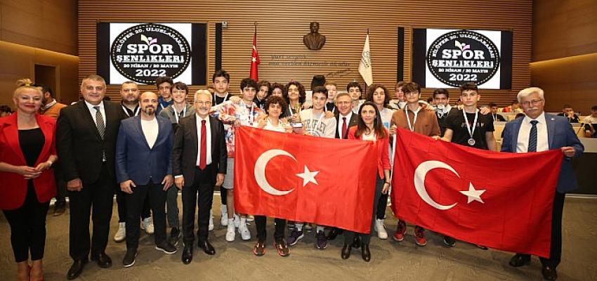 Konuşmanın ardından Başkan Turgay Erdem, CHP Bursa Milletvekili Nurhayat Altaca Kayışoğlu, CHP Nilüfer İlçe Başkanı Fırat Yılmaz ile meclis üyeleri dereceye giren sporculara madalya ve kupalarını verdi.