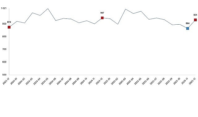 Bir önceki ay 863 bin 651 ton olan ticari süt işletmelerince toplanan inek sütü miktarı Aralık ayında %7,8 oranında artarak 930 bin 898 ton oldu.
