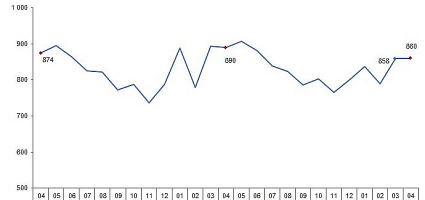 Bir önceki ay 858 bin 299 ton olan ticari süt işletmelerince toplanan inek sütü miktarı Nisan ayında 0,2 artarak 859 bin 712 ton oldu.