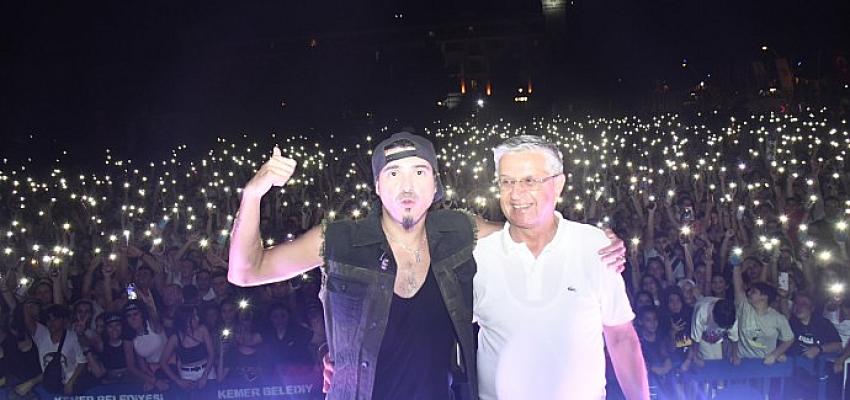 Kemer’de Manga konserinde gecenin protokolü gençlerdi. Kemer Belediye Başkanı Necati Topaloğlu, konseri gençlerle birlikte izledi.
