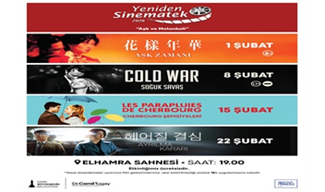 Yeniden Sinematek, şubat ayında “Aşk ve Melankoli” temasıyla sanatseverlerle buluşmaya hazırlanıyor. Farklı ülke sinemalarından dramdan müzikale uzanan geniş bir tür yelpazesinden filmlerin yer aldığı seçkide Institut Français iş birliğiyle yapılacak bir gösterim de yer alıyor. Ücretsiz gösterimler şubat ayı boyunca her pazar saat 19.00’da Elhamra Sahnesi’nde izleyici ile buluşacak.Tuhaf bir komşuluk hikâyesi: Aşk ZamanıÖdüllü yönetmen Wong Kar-Wai’nin yazıp yönettiği 2000 Hong Kong, Fransa ortak yapımı Aşk Zamanı filmi, 2000 Cannes Film Festivali’nde oyuncusu Tony Leung Chiu-Wai’e En İyi Erkek Oyuncu Ödülü’nü kazandırdı. Ayrıca 2001 César Ödüllerinden En İyi Yabancı Film Ödülü ile döndü. 1960’ların Hong Kong’unda geçen filmde, başkalarıyla evli olan bir kadın ve bir erkek komşunun arasında oluşan bağ konu ediliyor.Siyah beyaz bir melankoli: Soğuk SavaşYönetmen koltuğunda Pawel Pawlikowski’nin oturduğu ve senaryosunu Pawel Pawlikowski, Janusz Glowacki ve Piotr Borkowski’nin kaleme aldığı 2018 Polonya, Fransa, Birleşik Krallık ortak yapımı Soğuk Savaş filmi, yönetmen Pawlikowski’ye 2018 Cannes Film Festivali’nde En İyi Yönetmen Ödülü’nü kazandırdı. 1950’lerde, Soğuk Savaş döneminde geçen filmde iki müzisyen olan Zula ve Wiktor’un Stalinist Polonya’dan Berlin’e, Yugoslavya’dan bohem Paris’in gece kulüplerine uzanan tutkulu aşkı melankolik bir hava ve siyah beyaz görüntülerle beyaz perdeye yansıtılıyor.Aşk, ayrılık ve melankoli: Cherbourg ŞemsiyeleriJacques Demy’nin yazıp yönettiği ve başrolünde Catherine Deneuve ve Nino Castelnuovo’nun yer aldığı 1964 Fransa, Almanya ortak yapımı Cherbourg Şemsiyeleri filmi, 1964 Cannes Film Festivali’nden Altın Palmiye ile döndü. Filmde Fransa’nın küçük bir liman kenti olan Cherbourg’da bir butikte şemsiye satarak geçinen anne kızın hikâyesi konu ediliyor. Gösterim Institut Français iş birliğiyle gerçekleştirilecek.Takıntıya dönüşen gizem: Ayrılma KararıYönetmenliğini Park Chan-wook’un üstlendiği ve senaryosunu Park Chan-wook ile Chung Seo-kyung’un ortak kaleme aldığı 2022 Güney Kore yapımı Ayrılma Kararı filmi ile yönetmen Park Chan-wook, 2022 Cannes Film Festivali’nde En İyi Yönetmen Ödülü’ne layık görüldü. Filmde namuslu ve azimli bir polis dedektifi olan Hae-joon'un soruşturduğu cinayet dosyasının baş şüphelisi olan kadınla yakınlaşması konu ediliyor. Bu hikâye üzerinden takıntının hızla umulmadık yerlere varışı beyaz perdeye yansıtılıyor. Kaynak: (BYZHA) Beyaz Haber Ajansı